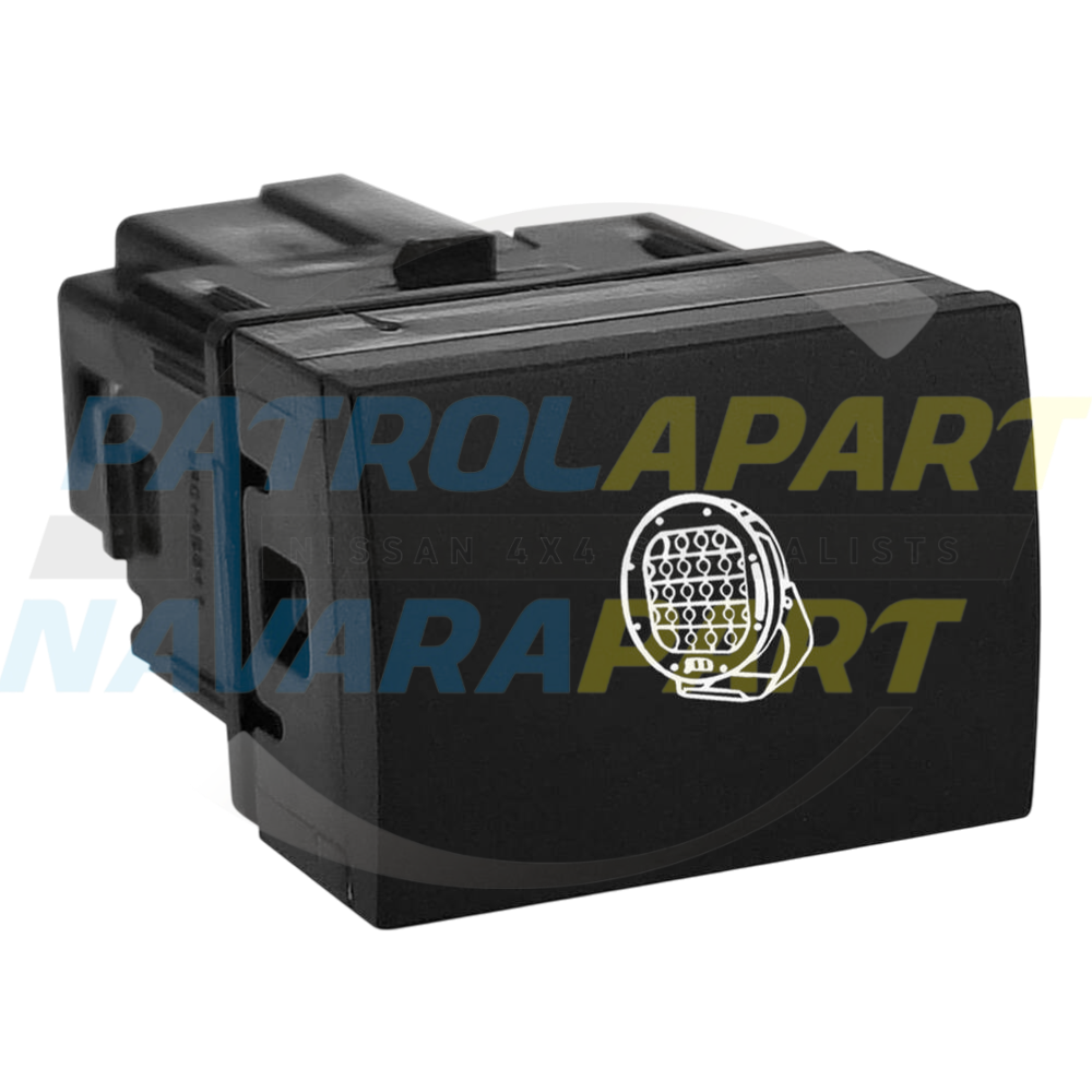 This HULK Driving Light Switch is designed to fit neatly into a blank switch location on your Nissan Navara's dashboard, providing a clean, factory-installed appearance. It is a high-quality push-button switch used to control aftermarket auxiliary lighting such as spotlights, light bars, or fog lights.