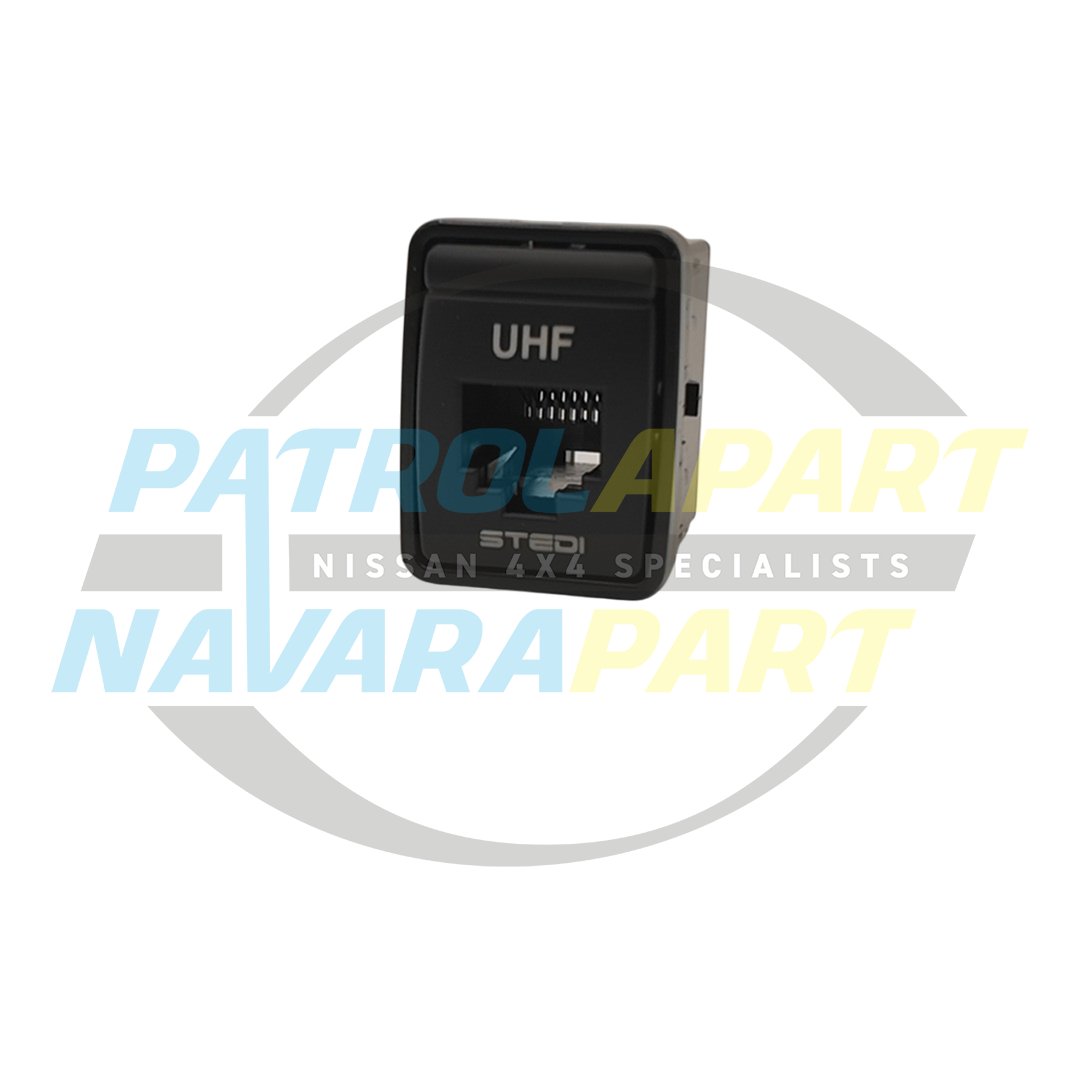 This Stedi pass-through switch is designed to be fitted into one of the empty factory switch blanks on the dashboard of your vehicle. It provides a clean, integrated access point for connecting your UHF radio's microphone, which uses a standard RJ45 connector.